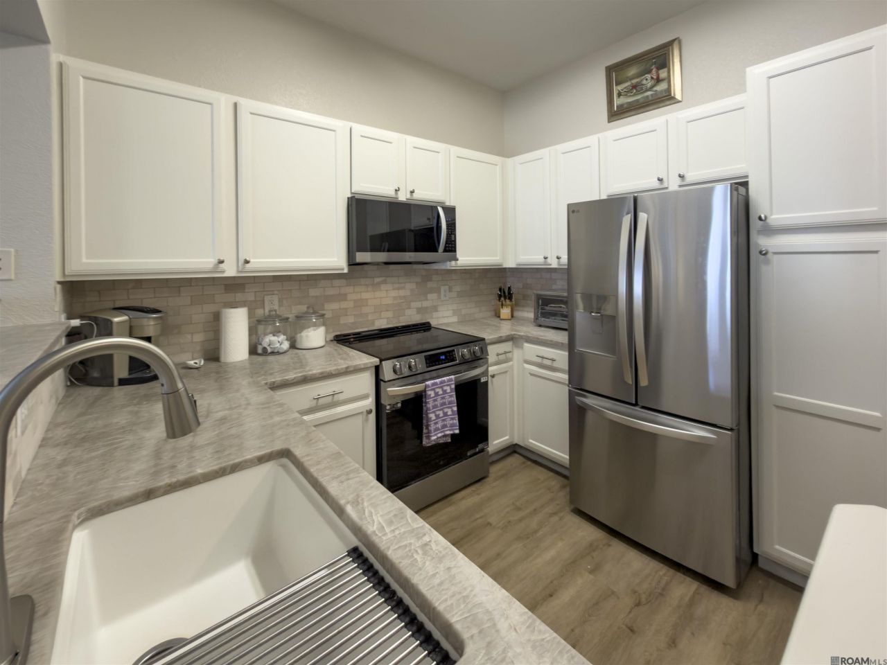 Third floor unit steps from parking structure with soaring 13 ft. ceilings & a Juliette balcony off living room of this unit in popular Reserve at Cedar Lodge Condominiums! One bedroom, one bath floor plan with hard surface flooring! No carpeting! New paint on walls & cabinetry, new countertops in bathroom & kitchen (Taj Mahal quartzite!) create a fresh, updated & inviting space! Enjoy the resort-style pool, hot tub, grills, resident clubhouse & fitness center at this gated community conveniently located on Corporate Blvd. handy to shopping and dining around Bocage/Jefferson Hwy. & I-10 at College Drive